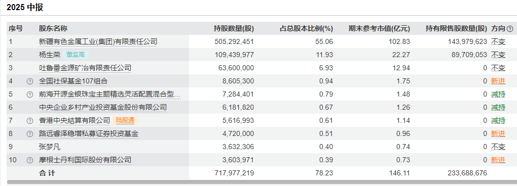 根据2025年中报,杨生荣为西部黄金的第二大股东,持股比例为11.93%。