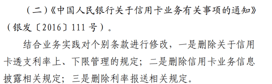 今年8月底,央行就《修改〈电子支付指引(第一号)〉等4件规范性文件》向社会公开征求意见,核心内容包括拟取消信用卡透支利率的上限和下限管理。