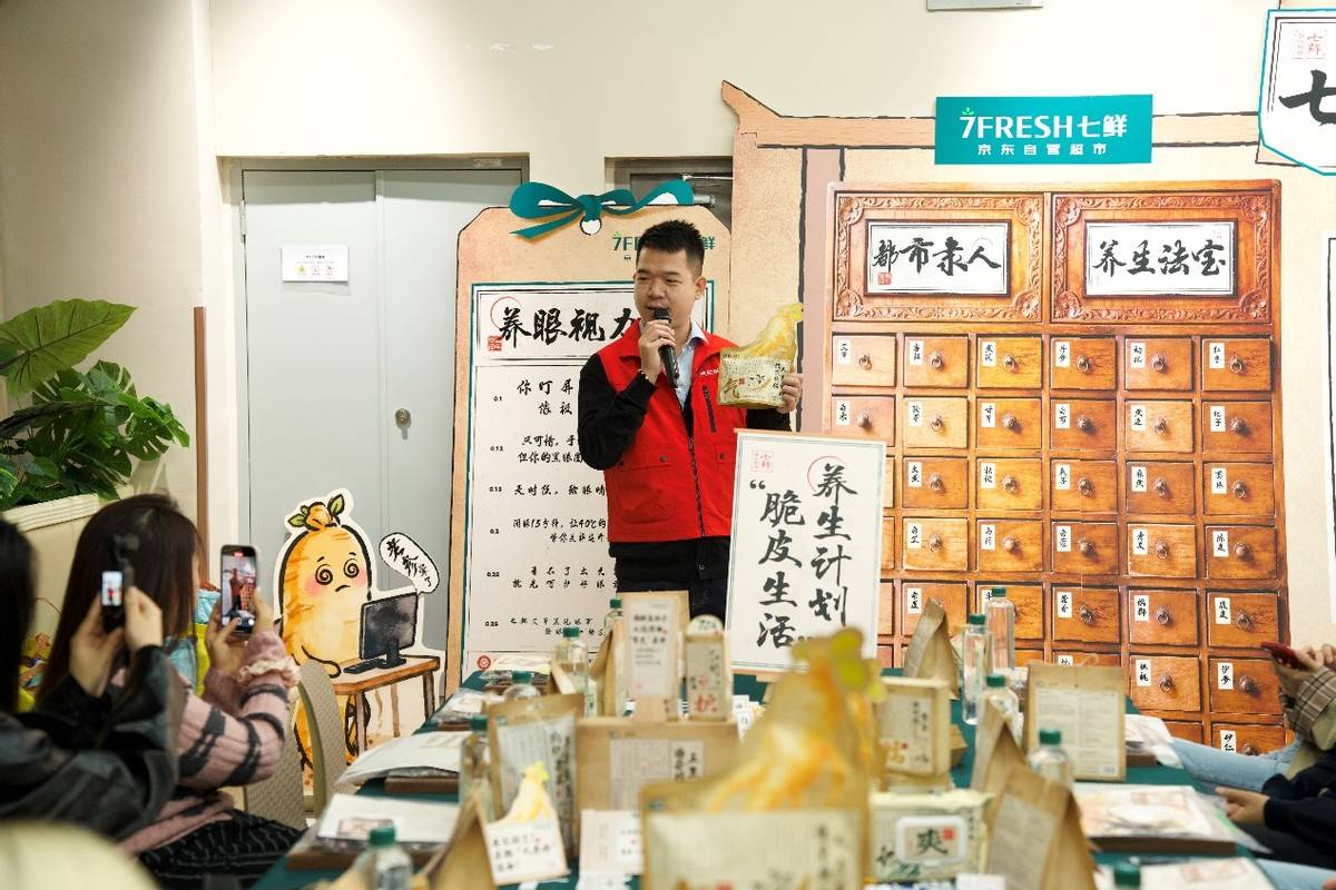 消费者京东七鲜门店内选购鹤年堂里联名新品