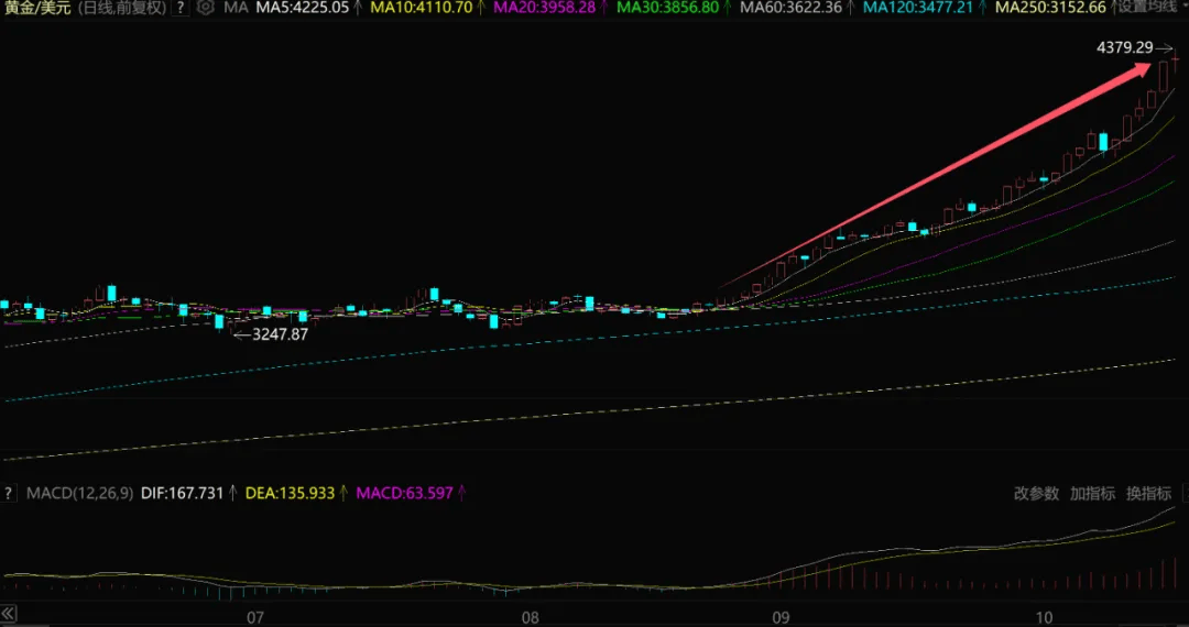 8月以来,国际金价从每盎司3300多美元,一口气暴涨到目前的将近4400美元,短短两个月上涨高达1000美元。 涨幅之大、涨速之快,放眼整个历史都极为罕见。
