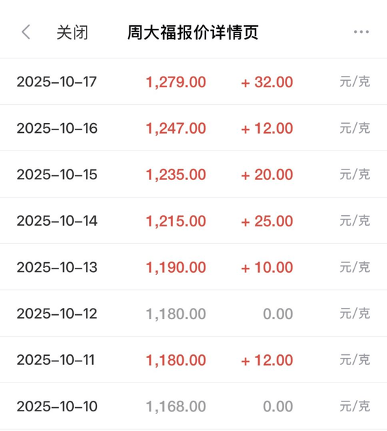 品牌金店足金饰品报价更是水涨船高,周大福等金店足金饰品报价来到每克1279元,较前一日单克上涨32元,较一周前单克上涨111元。