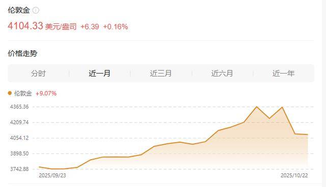 北京时间10月21日晚间,现货黄金跌幅一度达到6.3%,创下2013年4月以来最大单日跌幅,最终收跌5.31%,报4124.36美元/盎司。此后,现货黄金继续下探,跌破4100美元/盎司关口,截至10月23日记者发稿时,报4104.33美元/盎司。纽约COMEX黄金期货10月21日至22日两日累计跌幅达到7.46%,震荡幅度近年来罕见。而就在本周初,国际金价还一度攀升至4381.21美元/盎司,创下历史新高。