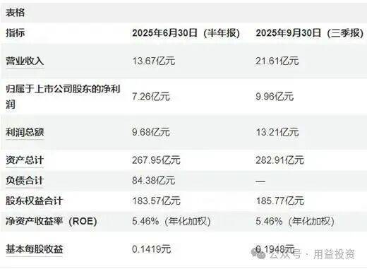 此前,半年报数据曾显示,上半年归属于上市公司股东的净利润7.26亿元,同比增长5.74%;而在三季报数据中,前三季度这一指标增至9.96亿元,同比增幅提升至6.60%,其中第三季度单季净利润2.70亿元,同比增长8.96%,增速较上半年提升3.22个百分点。
