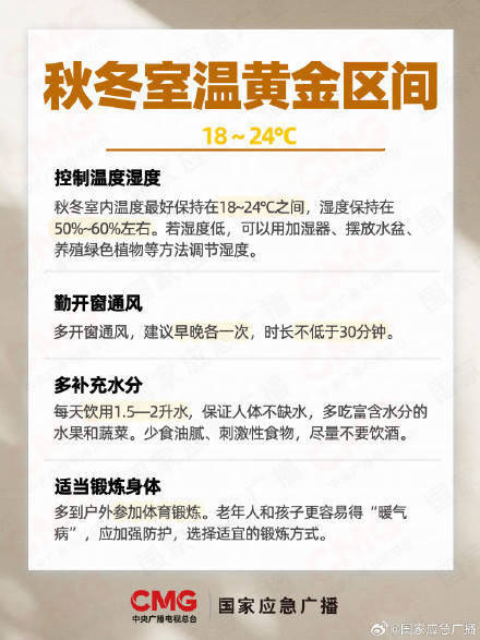 天气越来越冷,部分北方城市已经提前供暖。但是暖气一来,你是不是也常觉得口干舌燥、莫名烦躁?️当心室温太高致暖气病:①空气中病菌快速繁殖②免疫力下降③诱发心脑血管疾病…… 秋冬供暖或开空调时,室内温度最好保持在18~24℃之间,湿度保持在50%~60%左右。房间如何保湿?使用加湿器需要注意什么?