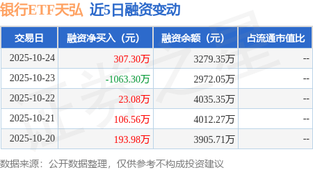证券之星消息,10月24日,银行ETF天弘(515290)融资买入781.75万元,融资偿还474.45万元,融资净买入307.3万元,融资余额3279.35万元,近20个交易日中有11个交易日出现融资净买入。