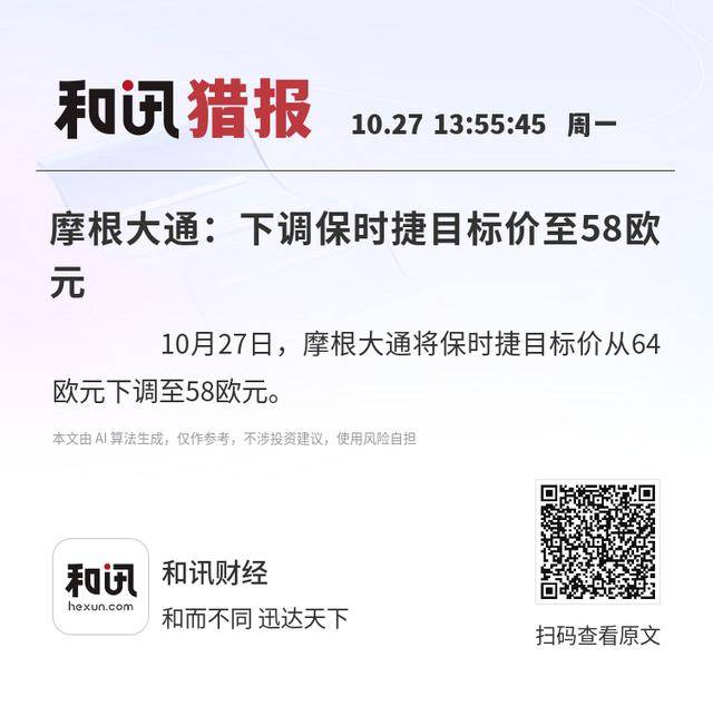 10月27日,摩根大通将保时捷目标价从64欧元下调至58欧元。