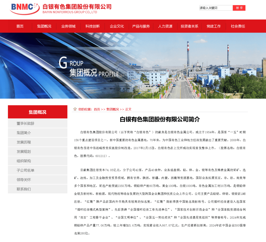 白银有色的前身是白银有色金属公司,成立于1954年,是国家“一五”时期156个重点建设项目之一,新中国重要的有色金属基地。70年来,为中国有色工业和地方经济发展做出了重要贡献。2008年,白银有色引进中信战略投资实施股份制改造。2017年2月15日,白银有色在上交所成功实现首发整体上市。