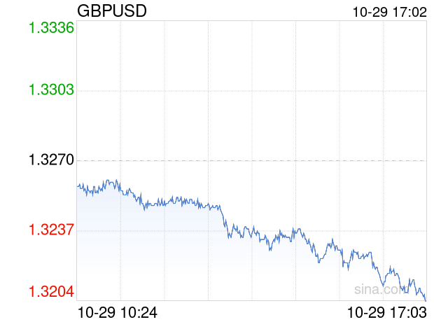 新浪外汇消息2025年10月29日,截至17时02分,外汇市场上英镑兑美元汇率跌破1英镑兑换1.3202美元。跌幅为-0.5124%