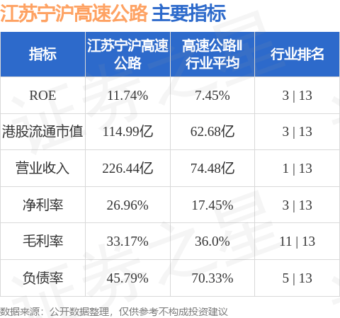 江苏宁沪高速公路港股市值114.99亿港元,在高速公路Ⅱ行业中排名第3。主要指标见下表: