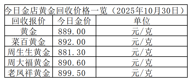 此外,今日黄金回收价格继续下跌6.3元/克。不同品牌回收价差较大,以下为部分金店回收参考价: