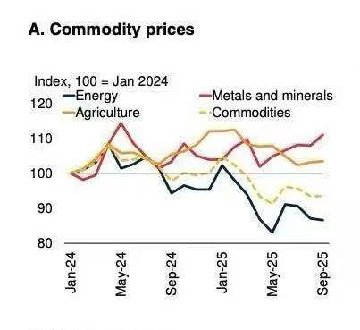 世行在报告中表示,受全球经济增长疲软、石油供应过剩加剧及政策不确定性持续等因素影响,预计2025年和2026年大宗商品价格将分别下跌7%。