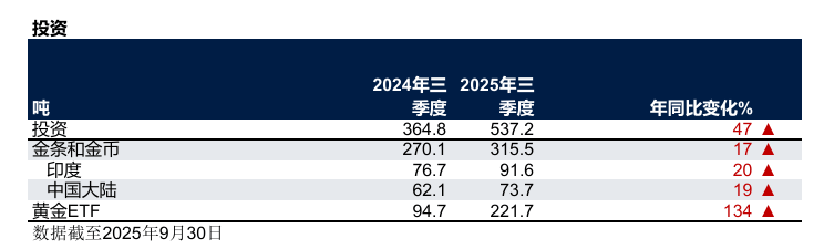 数据显示,三季度黄金投资需求激增至537吨,同比增长47%。世界黄金协会将这一增长势头归因于:地缘政治环境的不确定性和动荡、美元的走弱态势以及金价攀升引发投资者的“错失恐惧(FOMO)”心理。