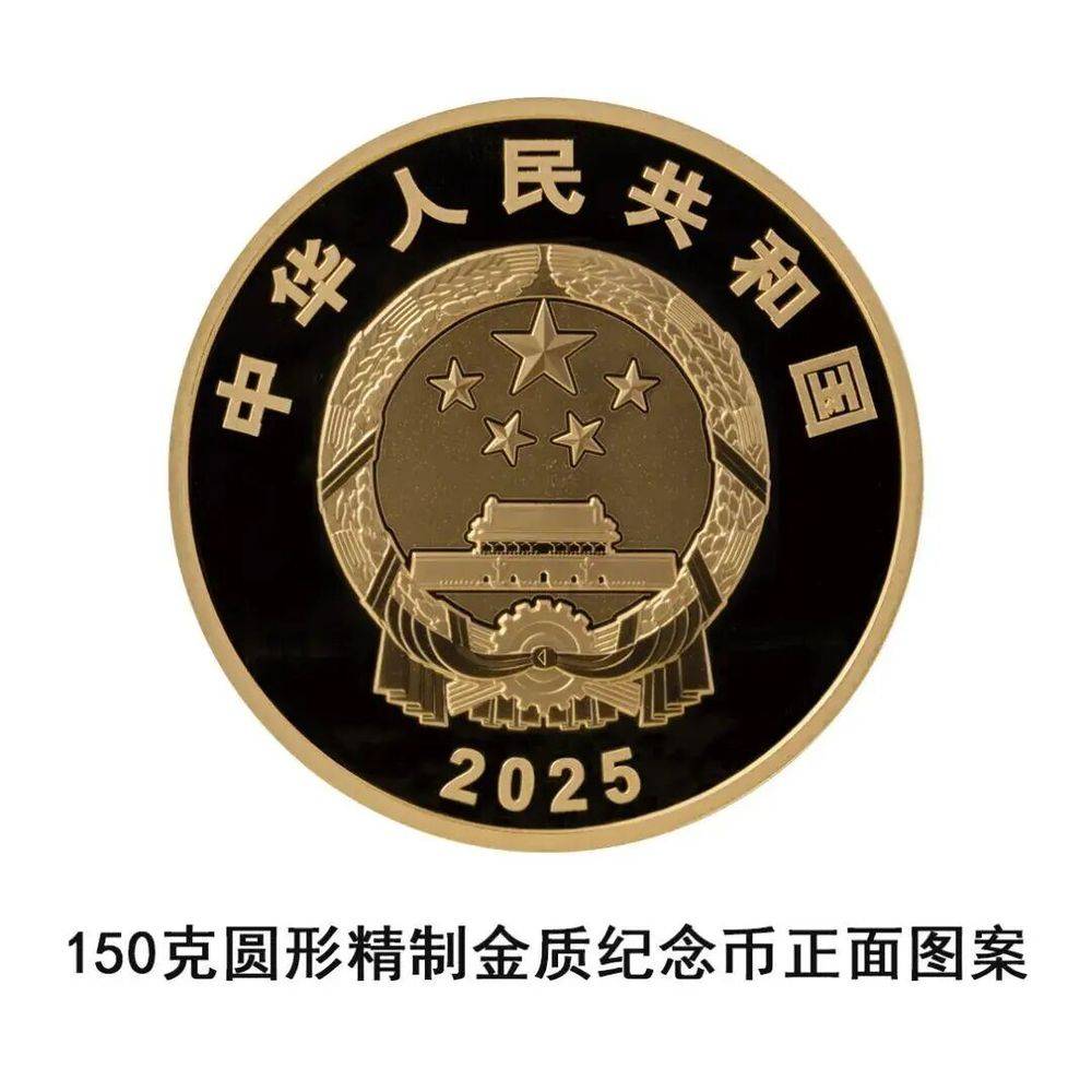 150克圆形金质纪念币为精制币,含纯金150克,直径60毫米,面额2000元,成色99.9%,最大发行量300枚。