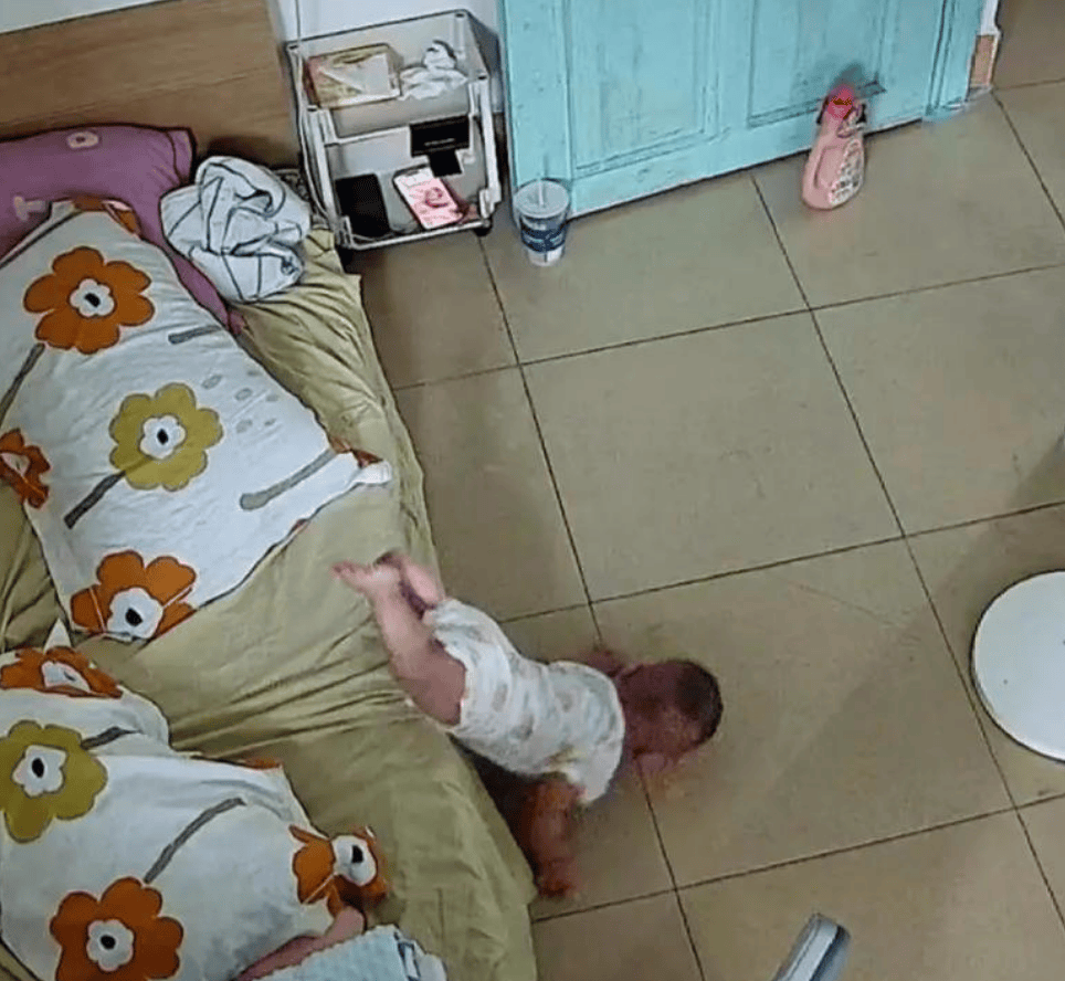 没想到,就在她刚转身走到门口,女儿连续往前翻滚了3圈后,“咚”的一声摔下床,而且还是脸着地。
