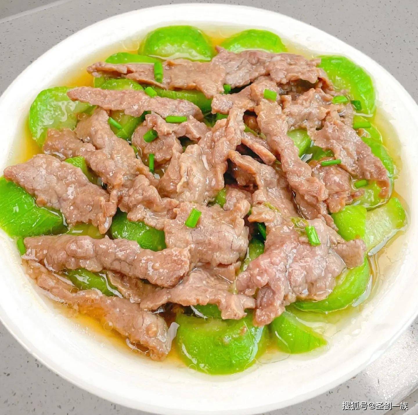 食材:牛肉150克(切薄片)、丝瓜1根、蒜末1汤匙、生抽2汤匙、淀粉1汤匙、食用油半汤匙,喜欢的话可以加点枸杞装饰。