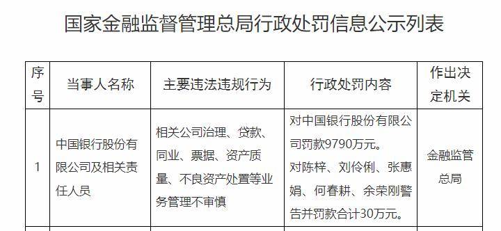 2025年10月,一则重磅消息在金融市场激起千层浪——中国银行股份有限公司因在公司治理及多项业务管理中存在不审慎之举,被监管部门施以9790万元的高额罚款。此处罚事件犹如一颗投入平静湖面的巨石,引发了市场的广泛关注。