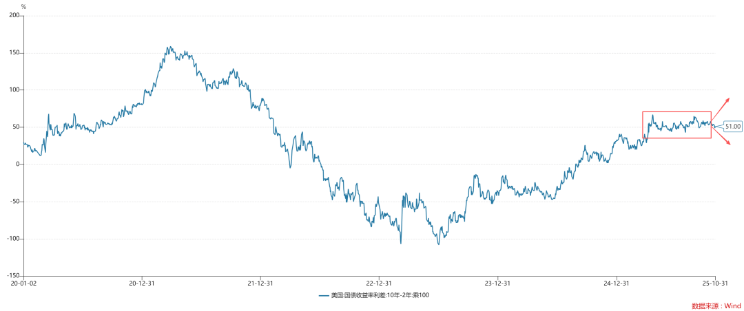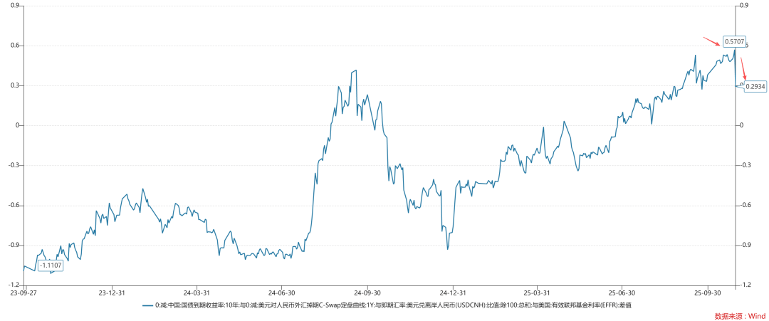如上图所示,10月降息之前,美联储的降息空间为57bp;降息落地后,美联储的降息空间收窄为29bp。因此,美联储12月份再降息25bp的空间十分充足。