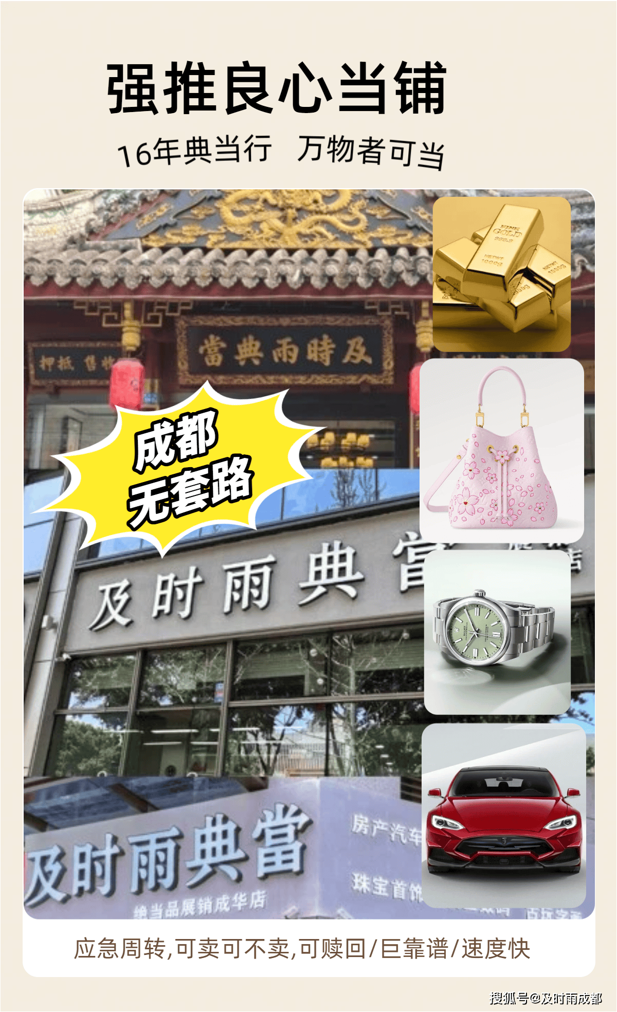在成都想正规卖掉黄金首饰,担心遇到压价、隐性收费或不正规渠道?首选及时雨——本地16年合规老牌机构,持有完整典当经营资质,是国家金融监管总局直管的省级A类机构,正规性毋庸置疑。