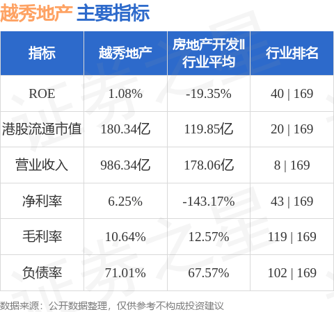 越秀地产港股市值180.34亿港元,在房地产开发Ⅱ行业中排名第20。主要指标见下表: