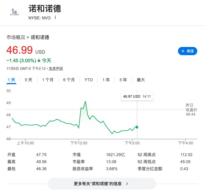 消息公布后,诺和诺德的美国存托凭证(ADR)股价曾一度上涨,但随后下挫约3%;礼来股价则波动后小涨。