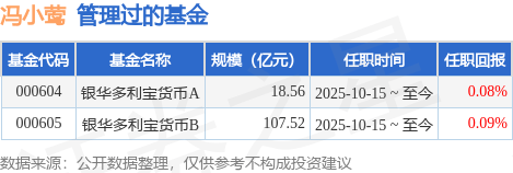 冯小莺女士:中国,硕士学位。2017年7月加入银华基金,历任投资管理三部固收研究部助理宏观利率研究员、宏观利率研究员,现任固定收益及资产配置部基金经理助理、投资经理助理(社保、基本养老)。2025年10月15日担任银华多利宝货币市场基金基金经理。2025年10月31日起担任银华双喜增利货币市场基金基金经理助理。