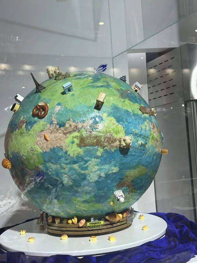 进博“全勤生”法国乐斯福的标志是一只燕子。展台上,一个重达4公斤的地球形状艺术面包象征着燕子飞过的180个国家和地区。