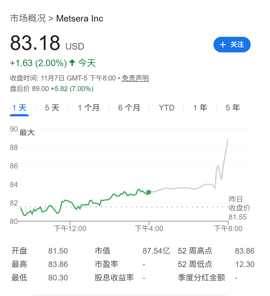 随着辉瑞和诺和诺德的持续加价,Metsera的股价一路飙升。自辉瑞最初宣布交易意向以来,其股价已上涨约150%。据报道,辉瑞在最后阶段上调了其报价。周五,Metsera股价在纽约交易中上涨2%,至83.18美元,公司市值达到约87.5亿美元。公司盘后股价在盘后交易中继续上涨7%。