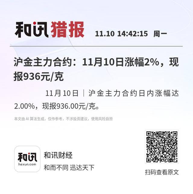 11月10日|沪金主力合约日内涨幅达2.00%,现报936.00元/克。