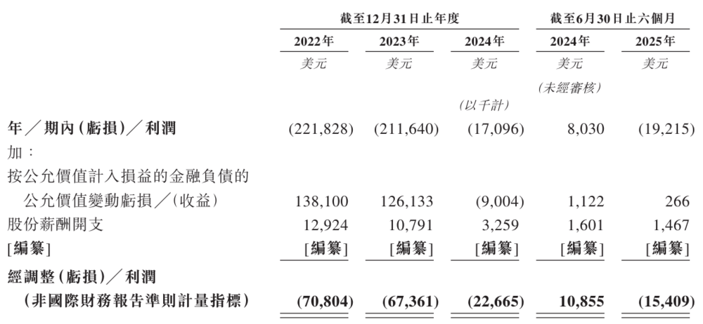 英矽智能2022年、2023年、2024年经调整净亏损分别为7080万美元、6736万美元、2267万美元;2025年上半年经调整净亏1541万美元。