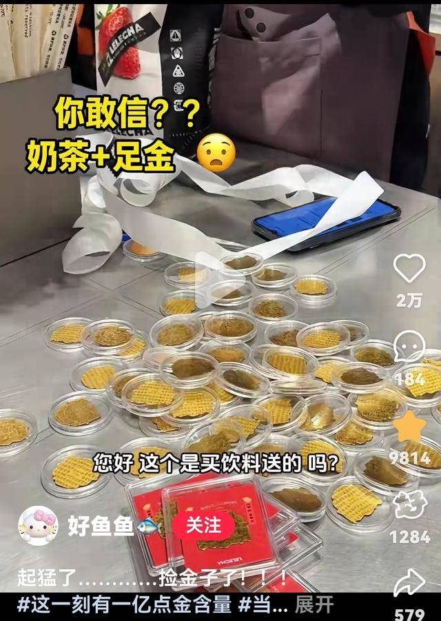 “这一刻有一亿点金含量,当代年轻人黄金血脉觉醒”,记者看到小红书一位深谙流量的博主发布的一条“茶饮”+“黄金”联名笔记,引来数万点赞,“引爆”无数跟帖,网友们热情分享自己的收藏和搭配心得,瞬间引发共鸣。