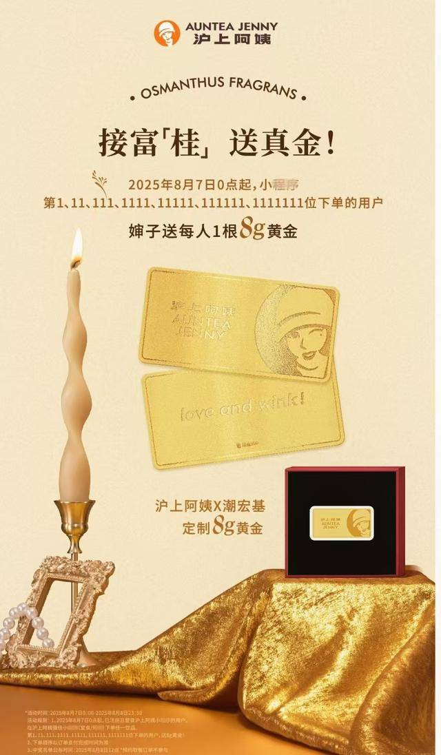 潮宏基联名沪上阿姨,限量7位指定下单号的消费者送黄金