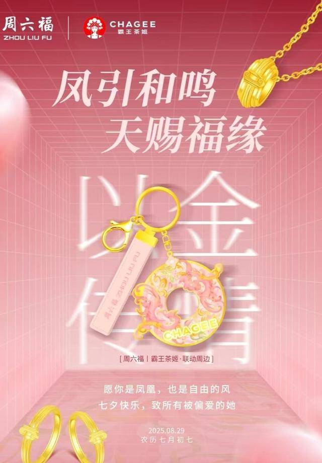 周六福与霸王茶姬在七夕推出“以金传情”联名周边