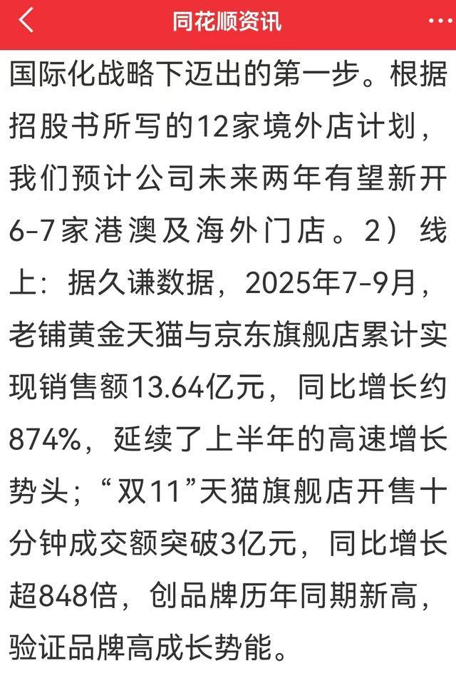 华泰证券发布的老铺黄金相关财报:“双11”期间天猫旗舰店销售数据