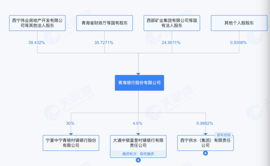 成立时,青海银行注册资本为1.01亿元,后经四次增资扩股及分红,注册资本增至25.57亿元。天眼查App显示,西宁伟业房地产等民营法人股东的股份占比为38.43%,青海省财政厅等国有股东的股份占比为35.73%,西部矿业集团等国有法人股东的股份占比为24.90%。
