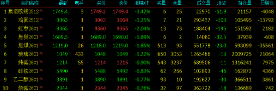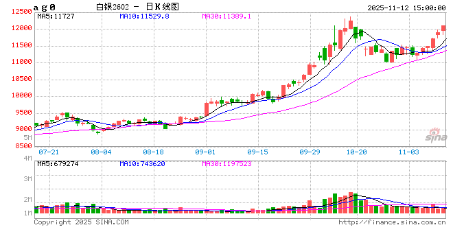 2025年11月12日,国内主力合约涨跌不一。沪银涨超2%,沪锡、丁二烯、SC、菜油、低硫(LU)、铁矿石涨超1%;跌幅方面,集运欧线、鸡蛋跌超3%,红枣跌超2%,、、玻璃跌超1%。