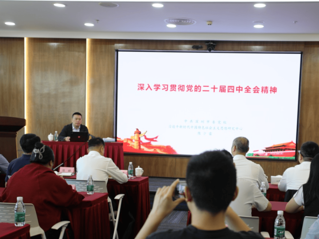 据悉,本次活动特邀深圳市委党校教授,深圳市宣讲团成员陈少雷现场授课。江苏省住建厅驻南方办事处、南通、淮安、盐城等地驻深办,以及江苏宾馆、江苏华建、中核华兴、中建安装南方公司等企业与机构的党员代表参与学习。