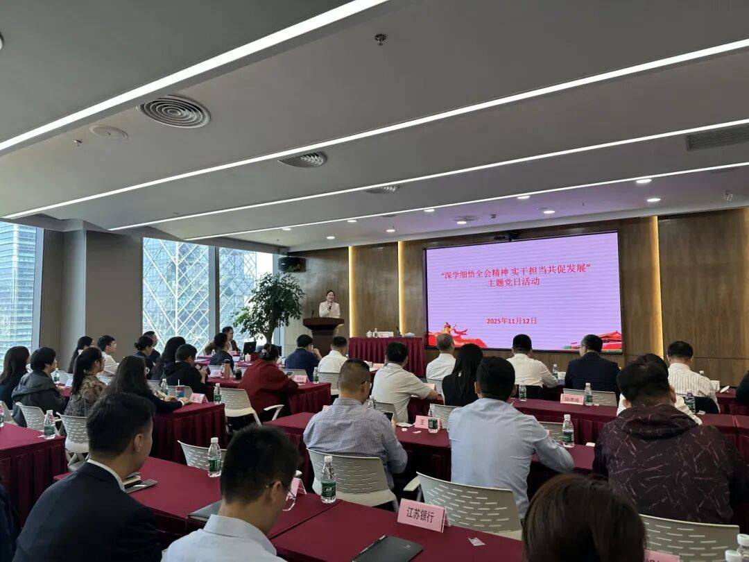 11月12日,江苏银行深圳分行联合江苏省人民政府驻深圳办事处(简称“江苏驻深办”),组织江苏在深企业与机构代表,共同开展党的二十届四中全会精神专题学习。