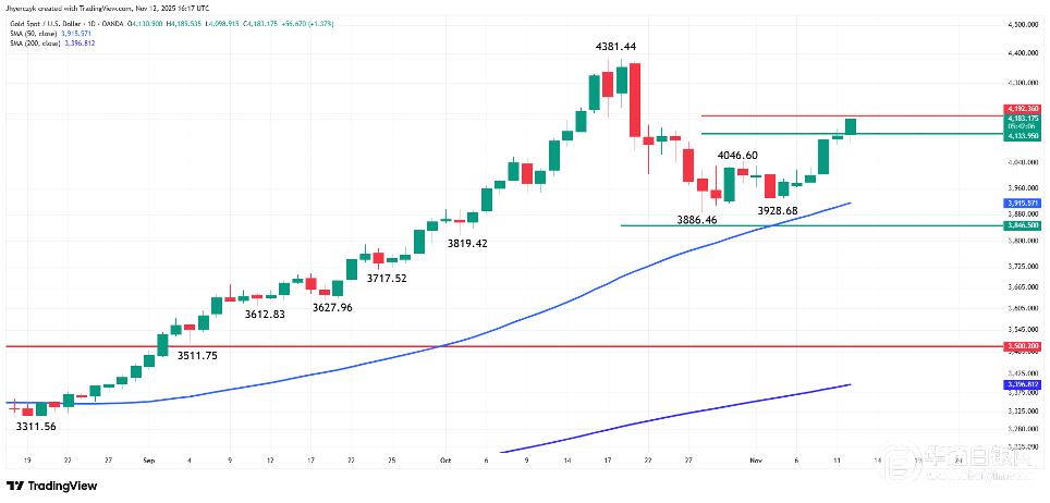 这些预期,再加上美国政府停摆导致经济数据推迟公布,使黄金多头得以控制局面,并为白银上涨提供了动力。