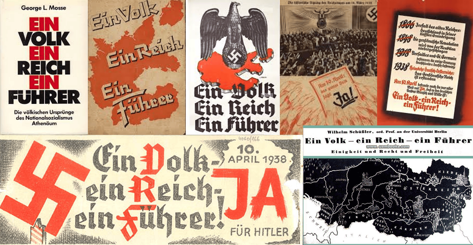 纳粹德国关于“一个民族、一个国家、一个领袖”的若干宣传材料。日本对于“单一”的执迷,与之一脉相承。