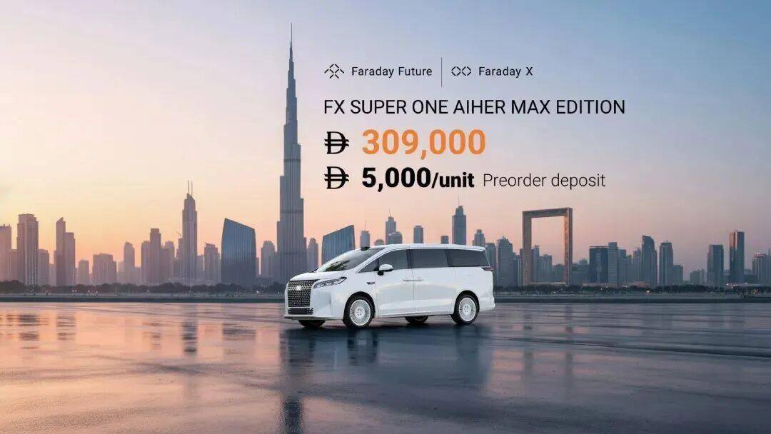 2024年9月,FX正式发布,目标是打造出爆款智能电动车(AI EV),主要面向美国市场,首款车型FX Super One于今年10月28日在阿联酋耀世上市,将推出GOAT、Max、Pro以及Standard共4个版本车型,目前率先上市的是AAIHEREV Max版本车型,售价为30.9万迪拉姆(约合59.8万元人民币)。据官方表示,新车将FF位于加州汉福德的工厂进行装配,并已在第三季度正式进入试生产阶段,预计将在本月底在阿联酋开启交付,目标是年底美国首车下线。