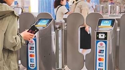 上海市黄浦区一地铁站闸机入口处,数字人民币、银联、VISA等支付方式的标志十分醒目。 王 冈摄(人民视觉)
