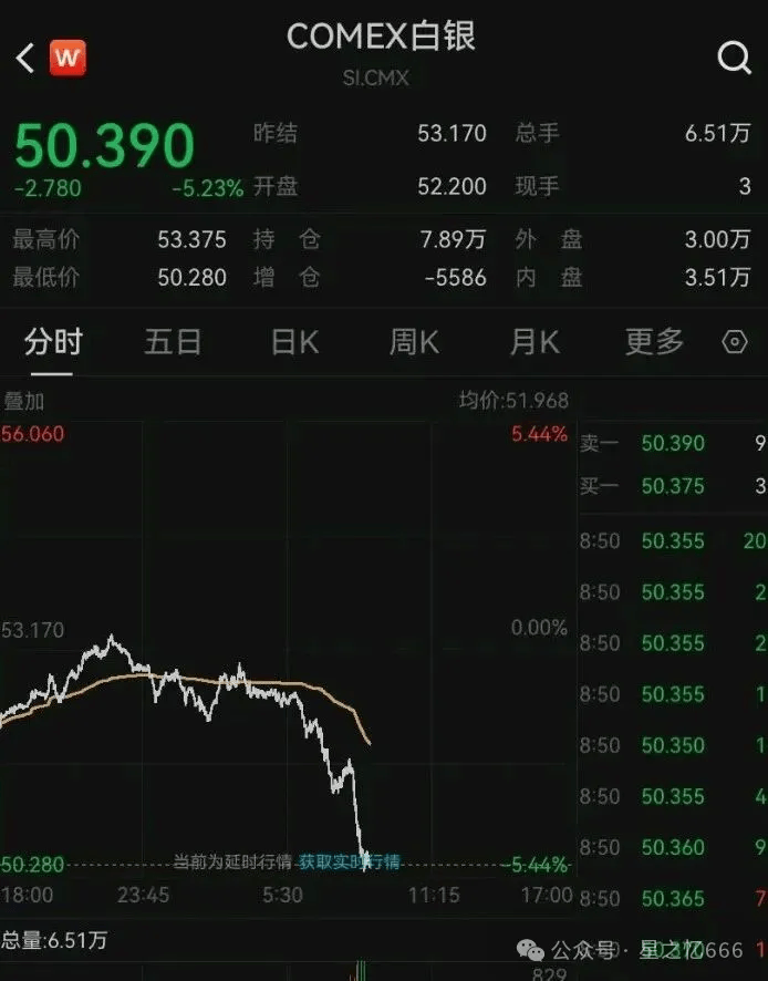 银价同样大跌,期货白银大跌超5%,现货白银跌超3.4%。