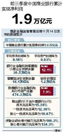 前三季度中国商业银行累计实现净利润1.9万亿元