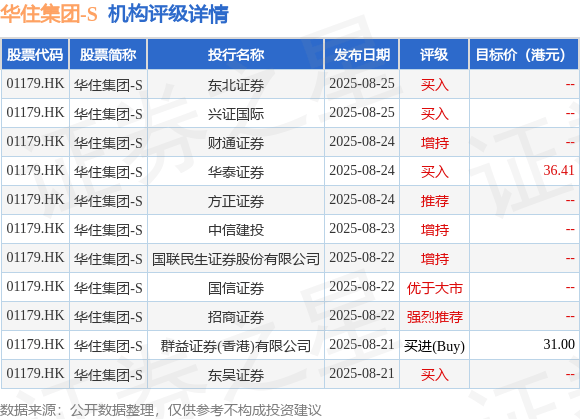 截至2025年11月17日收盘,华住集团-S(01179.HK)报收于34.34港元,下跌1.77%,成交量196.49万股,成交额6731.53万港元。投行对该股的评级以买入为主,近90天内共有4家投行给出买入评级,近90天的目标均价为33.7港元。东北证券最新一份研报给予华住集团-S买入评级。