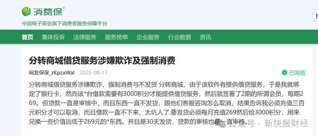 分转商城曾从事的现金贷业务,涉嫌存在强制捆绑扣费,侵害消费者权益。在第三方平台上,用户将分转商城称作“反申请平台”“骗会员费平台”等,皆是对分转商城平台扣费乱象不满的表达。