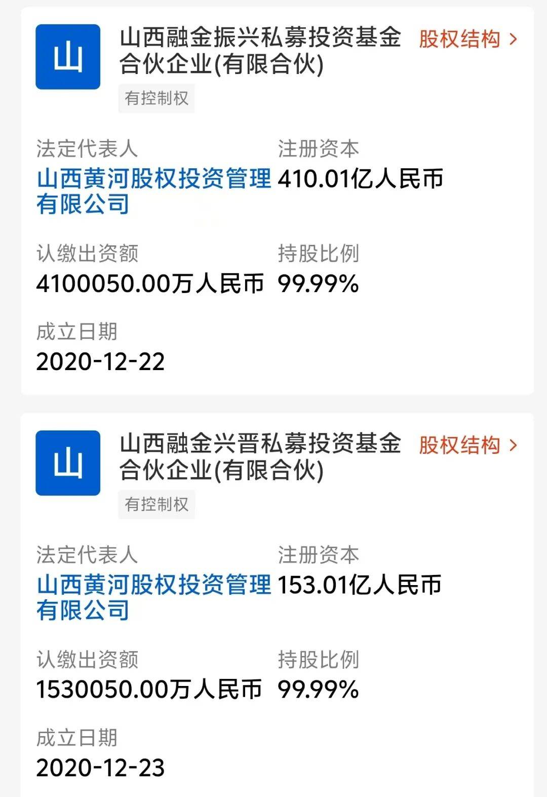 这个平台成立之后,将563亿元一分为二,成立两个不同的平台,分别是 融金兴晋和融金振兴。其中融金兴晋拿走153亿元,这些钱被用作对山西银行的资本金出资;融金振兴就拿走410亿元,用于买下五家合并城商行的数百亿不良贷款坏账。
