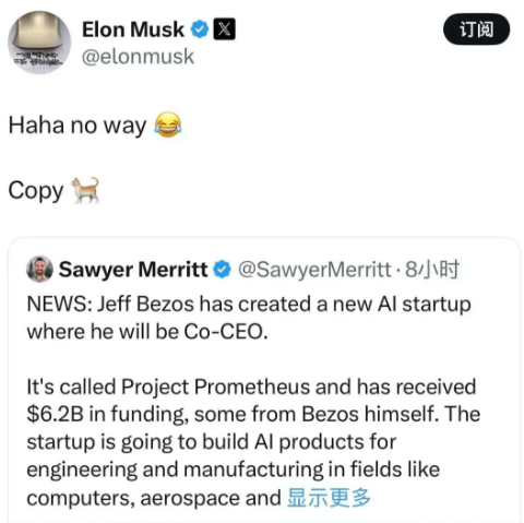 如今,贝索斯杀入AI赛道,虽主攻方向与马斯克旗下xAI有所不同,但在自动驾驶、机器人、太空AI等交叉领域,潜在冲突不可避免。