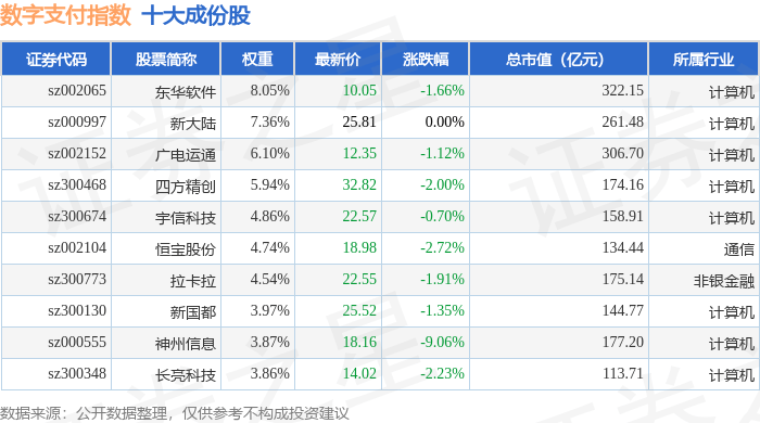 数字支付(980113)指数十大成份股详情如下: