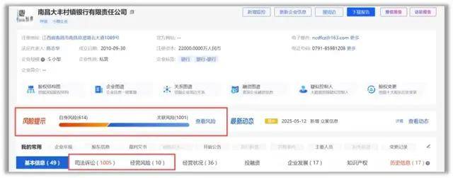 此前这家银行的原行长曾因违法发放贷款被判获刑。截至目前,根据同花顺iFinD数据,仍涉及1005项司法诉讼、10项经营风险,反映出的风险问题不容轻视。
