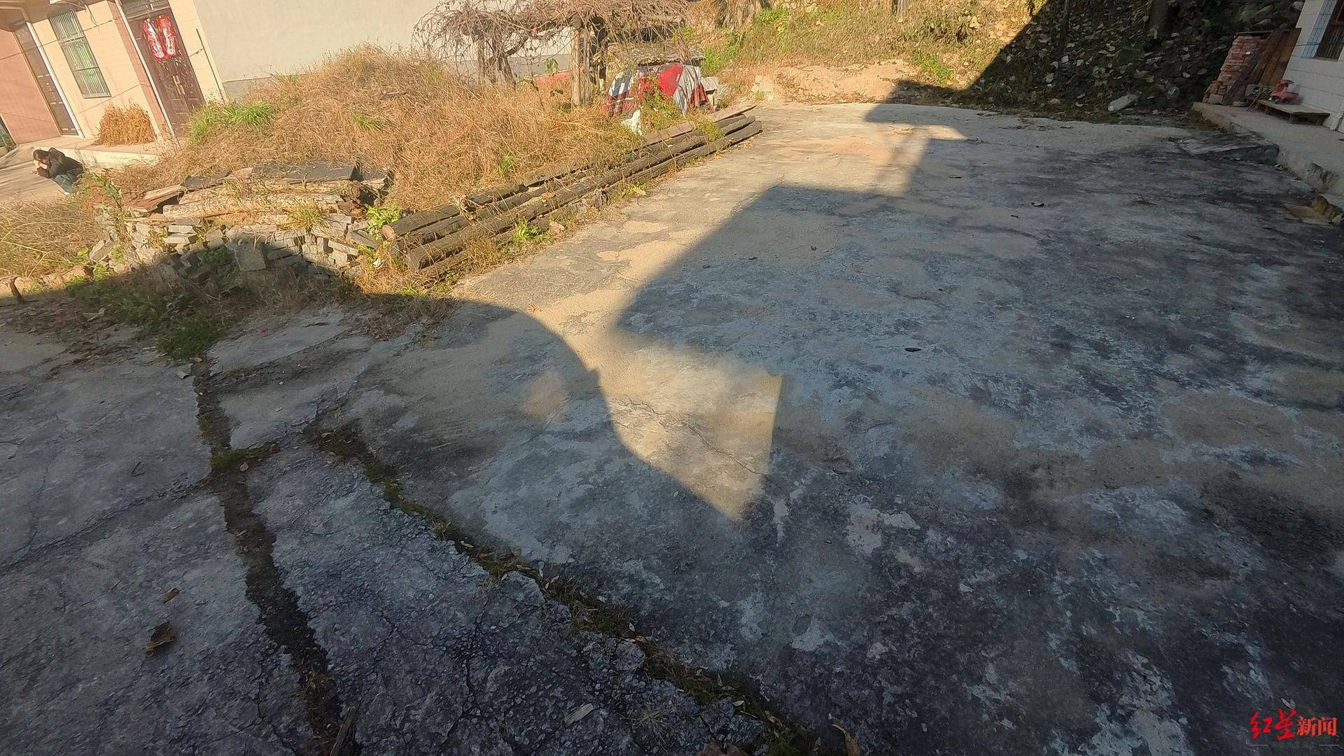 在张某全家后墙位置,寇超指着张家地基外裸露的部分说,张某全就是想在地基外面这部分修自家排水渠,并占用部分寇家路面。“我妈妈不同意,(建议)等那个砂石路垫好、路面硬化时开始修,但是张某全非要马上修。”